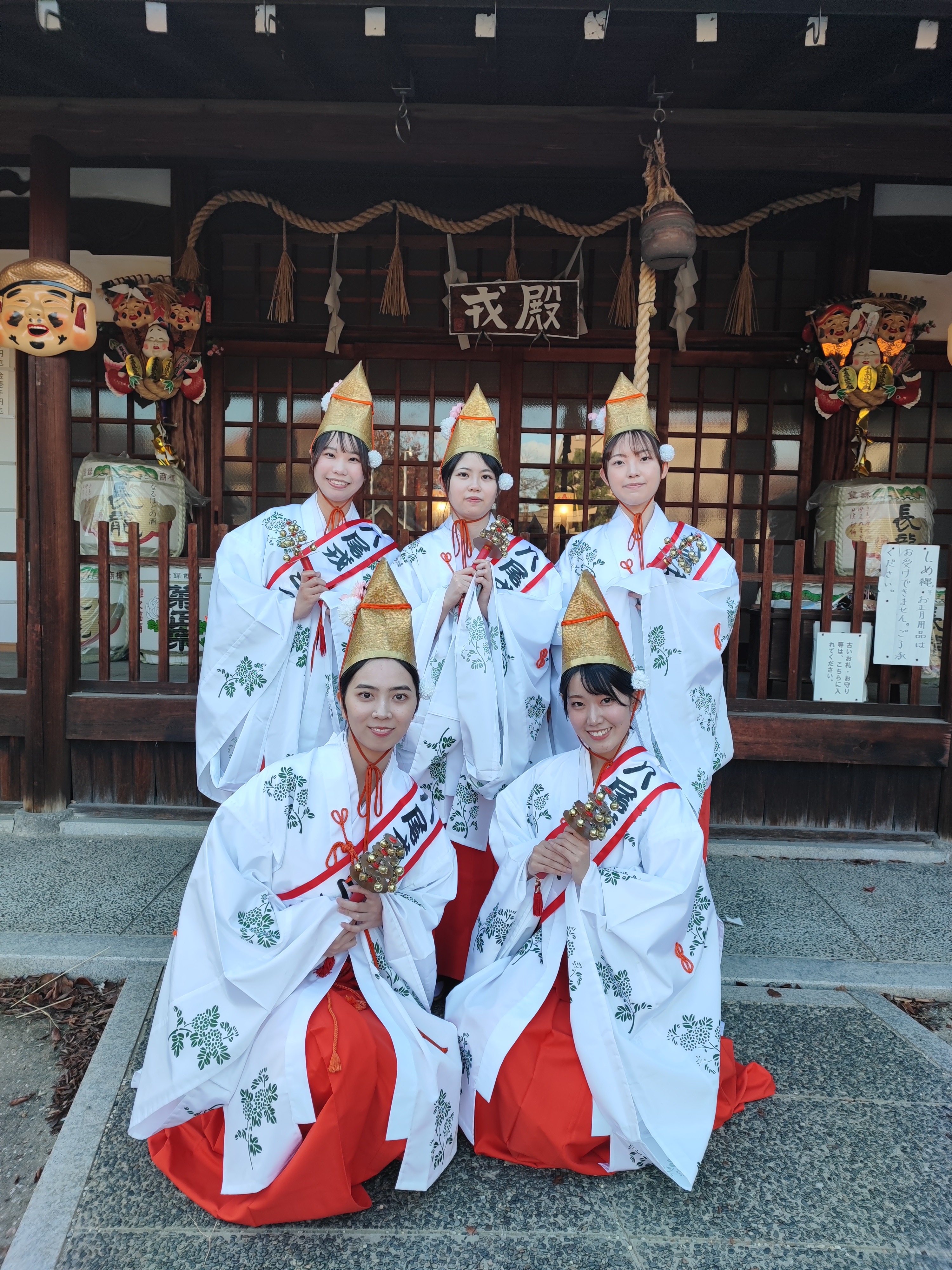 令和8年1月7日(水)・8日(木)日本一早い八日戎では、今年度あらたに選ばれました5名の福娘が皆さまのご参拝を福福しい笑顔でお待ち申し上げます。